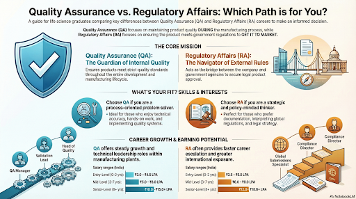 For life science graduates, career options after completing a degree in pharmacy, biotechnology, or biochemistry often come down to two promising fields — Quality Assurance (QA) and Regulatory Affairs (RA).